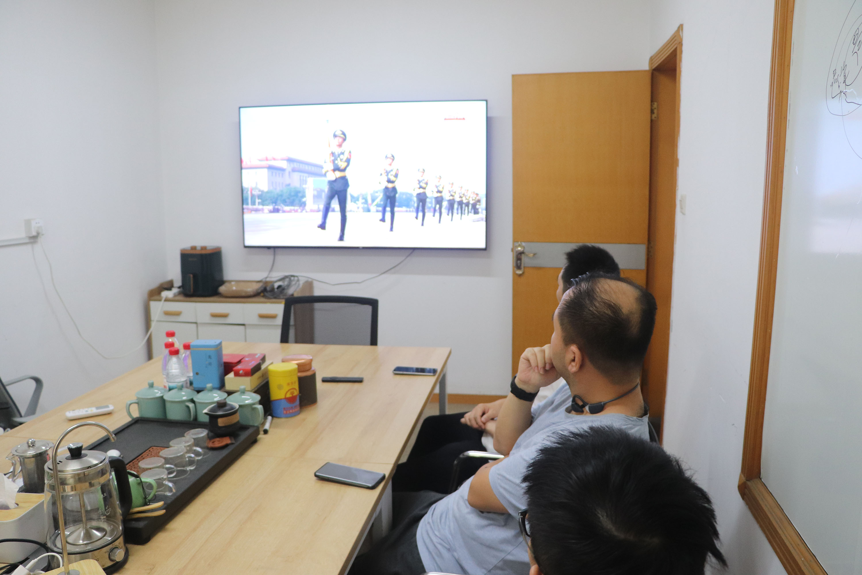 直播过程中,大家全神贯注,目不转睛地观看每一个环节。整齐划一、威武雄壮的受阅方队,英姿飒爽、意气风发的官兵面貌,自主研发、技术先进的武器装备……一幕幕震撼人心的画面,一次次引来现场热烈的掌声和由衷的赞叹。员工们为国家强大的综合国力、国防建设的辉煌成就以及人民军队的崭新风貌感到无比骄傲和自豪。